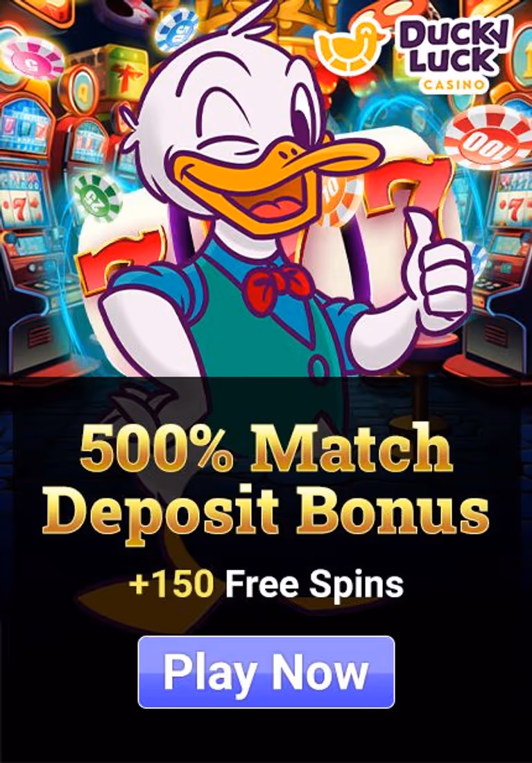 DuckyLuck Casino does not currently list any active no-deposit bonus codes. The operator’s promos focus on deposit-triggered packages — including a massive welcome match, a crypto welcome, daily free spins (from your third deposit), reload boosts, and VIP rewards. If you were hoping for a true no-deposit freebie, the closest options at the moment are automatic daily spins after deposit or occasional site promotions that may be announced on the casino’s promotions page.